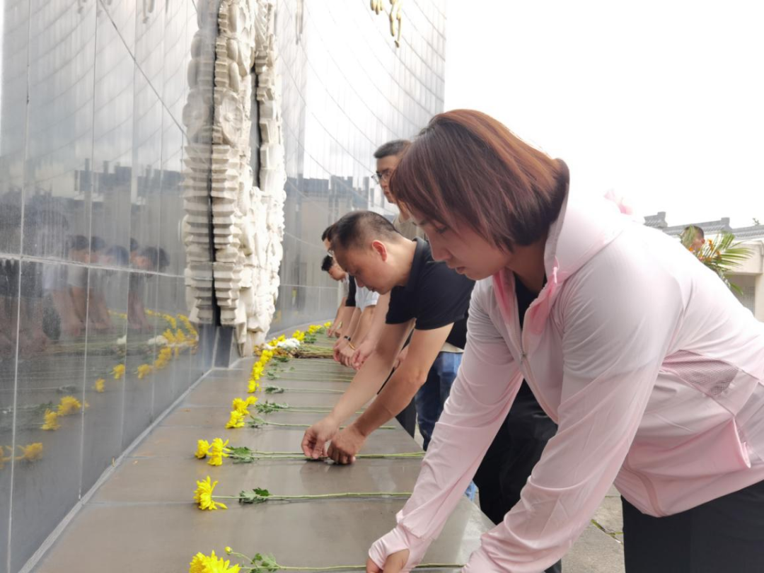 大家一起列隊向英烈們敬獻花圈,集體三鞠躬,向他們表達崇高的敬意,寄托無限的哀思。