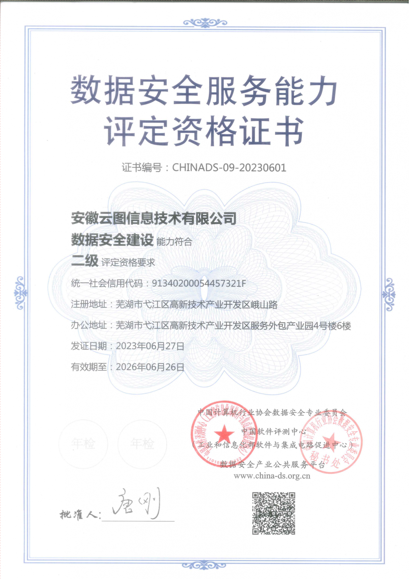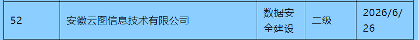 ? ? ? 安徽云圖以優(yōu)異的成績(jī)通過(guò)數(shù)據(jù)安全服務(wù)能力驗(yàn)證,獲得數(shù)據(jù)安全建設(shè)能力二級(jí)(最高等級(jí))資格證書,成為全國(guó)首批通過(guò)該項(xiàng)驗(yàn)證的機(jī)構(gòu)之一。